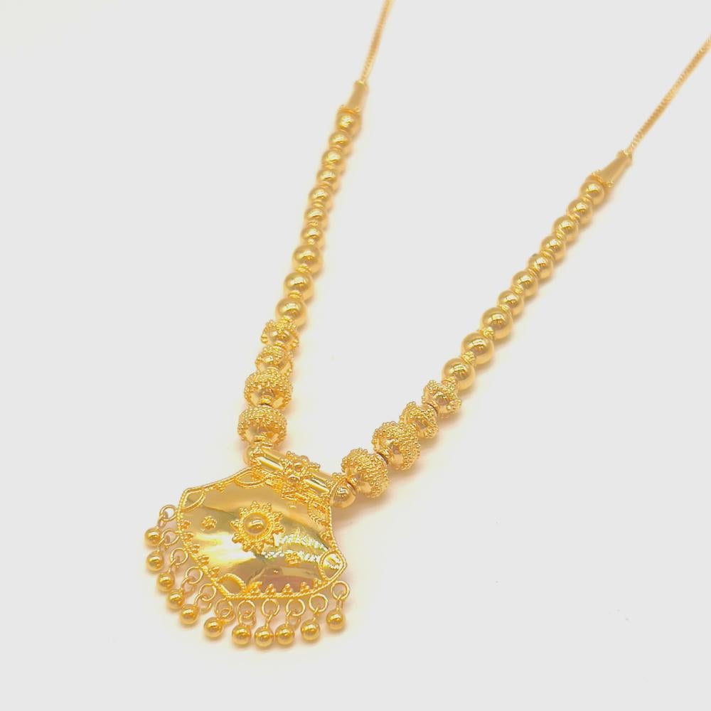 - مصنوع من الذهب عيار 21: هذا يعني أن العقد يحتوي على نسبة عالية من الذهب الخالص، مما يضمن جودته ومتانته.